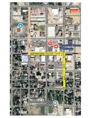 Click HERE to Register your Parade Unit (not yet available) or call the Pipestone Area Chamber of Commerce at 507-825-3316 to register or for more information. Click HERE for a printable lineup map instructions (not yet available).
