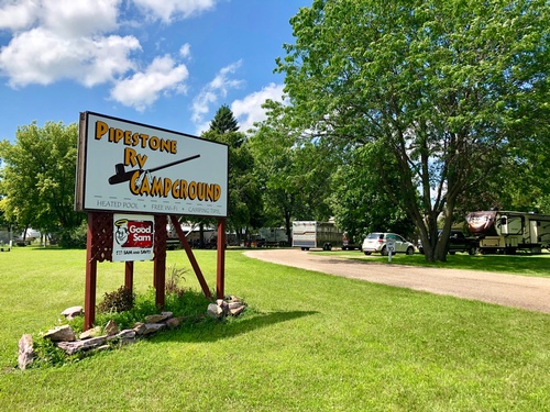 Open May 1st through October 1. Pipestone RV Campground has 78 sites, pool, clean restrooms, pavilion rental, horseshoe pits, 24 hour laundry, firewood, ice, and lots more.